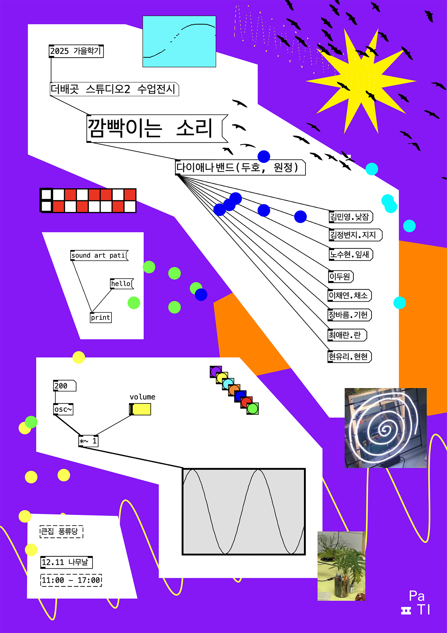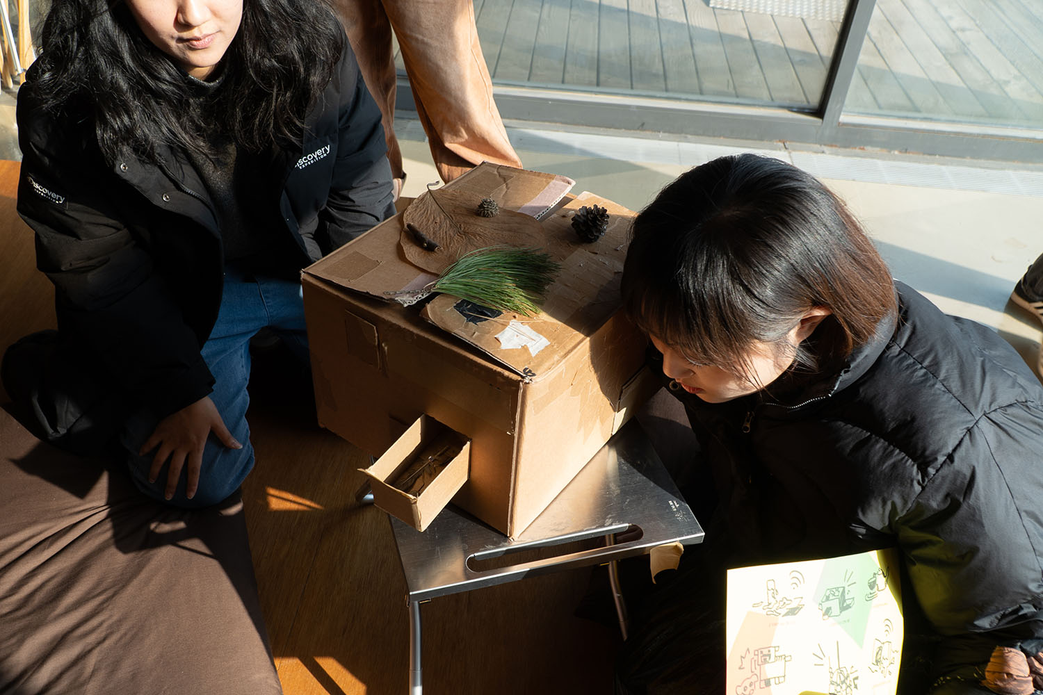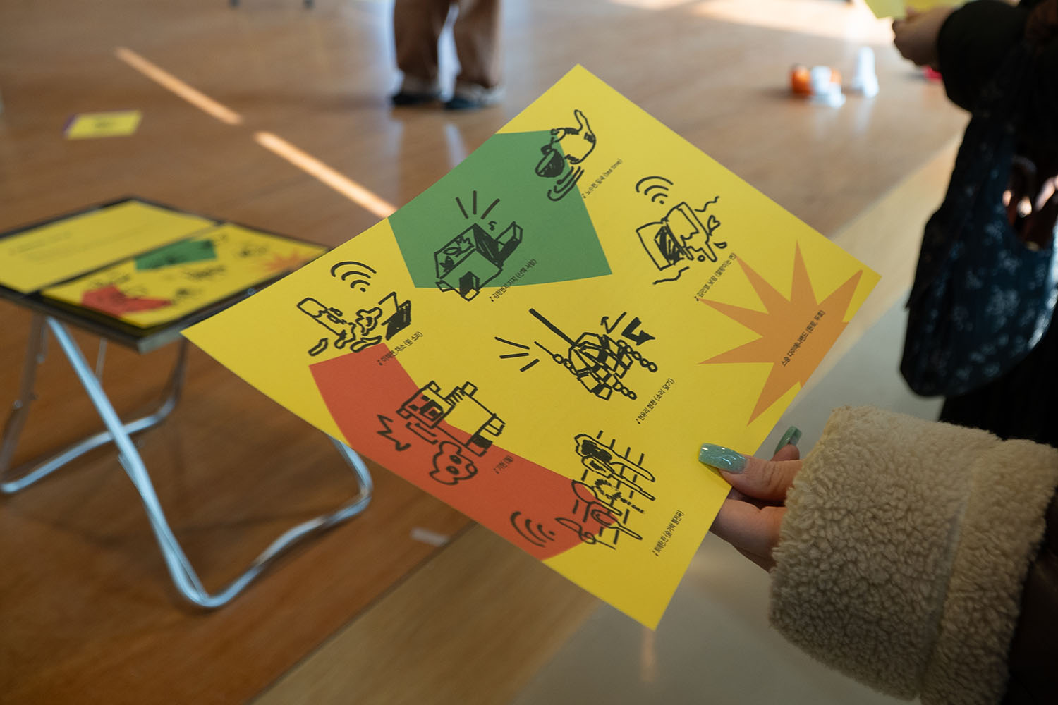 들리는 소리, 들었던 소리. 듣는 것을 다른 감각과 연결하고, 단절시키고, 혹은 재배치한다. 지금 어떤 소리가 들리는가. 그렇다면 우리는 무슨 소리를 만들 수 있는가? 참여자들은 각자의 듣는 경험과 만드는 경험을 바탕으로, 소리의 모양새를 얽는다.