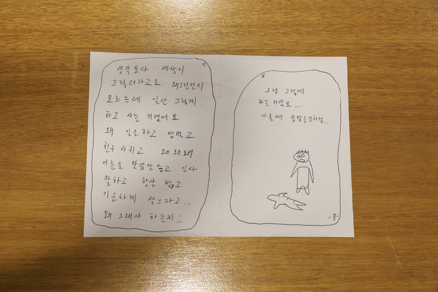 길에서 만난/찾아낸 한글을 모으고, 그 안에서 웃긴 점을 발견하고, 한글이 지금 모습이 되기까지 어떤 일이 있었는지 조사 해보고. 내가 “한글을 좋아해요”라고 말할 때 그러니까 그 ‘한글’이라는 게 뭔지 스스로에게 설명하고 싶어서 여태 미뤄둔 공부를 했다.