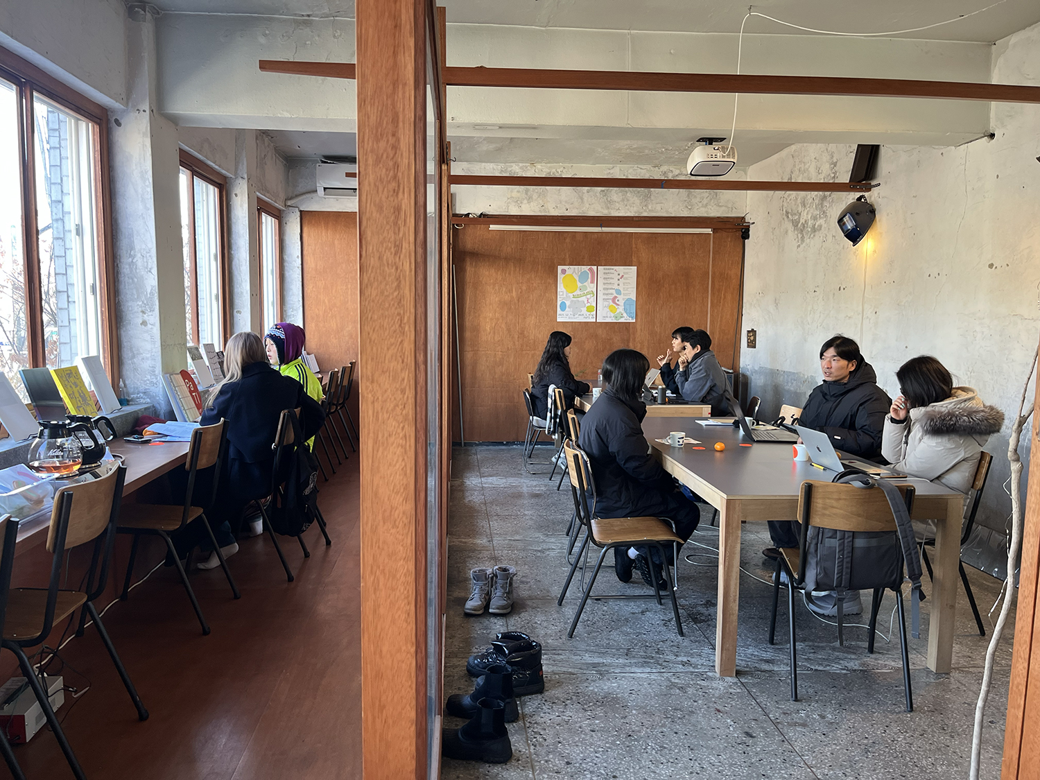 이번 사이맞이는 파티 마친배우미들과 함께 준비하였습니다. 서울 망원동에 위치한 한배곳 마친배우미 한호의 공간 HHSS House에서 더배곳 마친배우미 홀리가 직접 만든 쿠키와 함께 진행되었고, 새맞이 그래픽 멋지음에는 더배곳 마친배우미 수민이 참여해 주었습니다. 파티 스승과 재학배우미와 함께 이야기를 나누며 파티와 한층 더 가까워지는 자리였습니다.