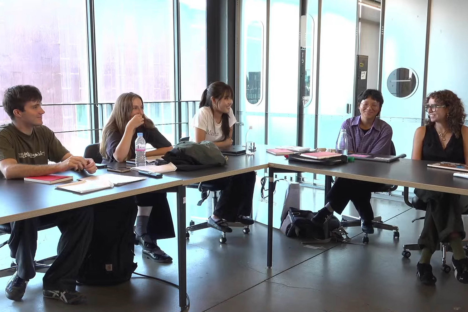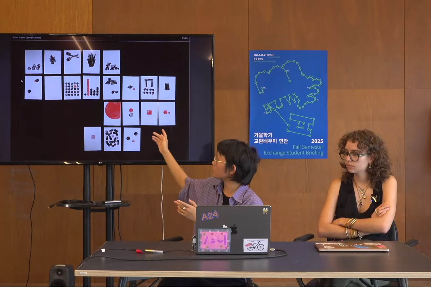 이번 가을학기에 PaTI로 교환배움을 온 5명의 교환배우미의 연찬이 열렸습니다. 프랑스 국립장식미술학교에서 온 Camille과 Leo를 시작으로, 독일 바이마르 바우하우스대학의 SooAh, 그리고 벨기에 라캉브르 국립시각예술학교의 Josephine과 Shani가 이야기를 나누어주었습니다. 각자 학교에서의 배움 과정과 경험 그리고 작업을 소개하며 파티 배우미들과 교류하는 시간을 보냈습니다.