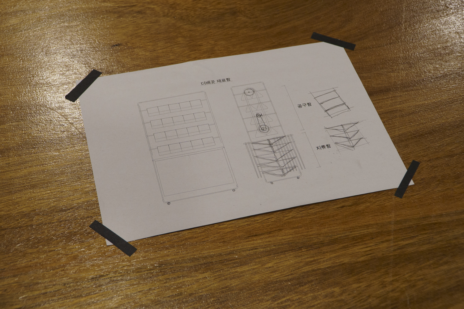 화백당에 재료함이 필요하다는 이야기를 듣고 아래와 같은 몇가지 조건을 선정해 스케치해 봤다.