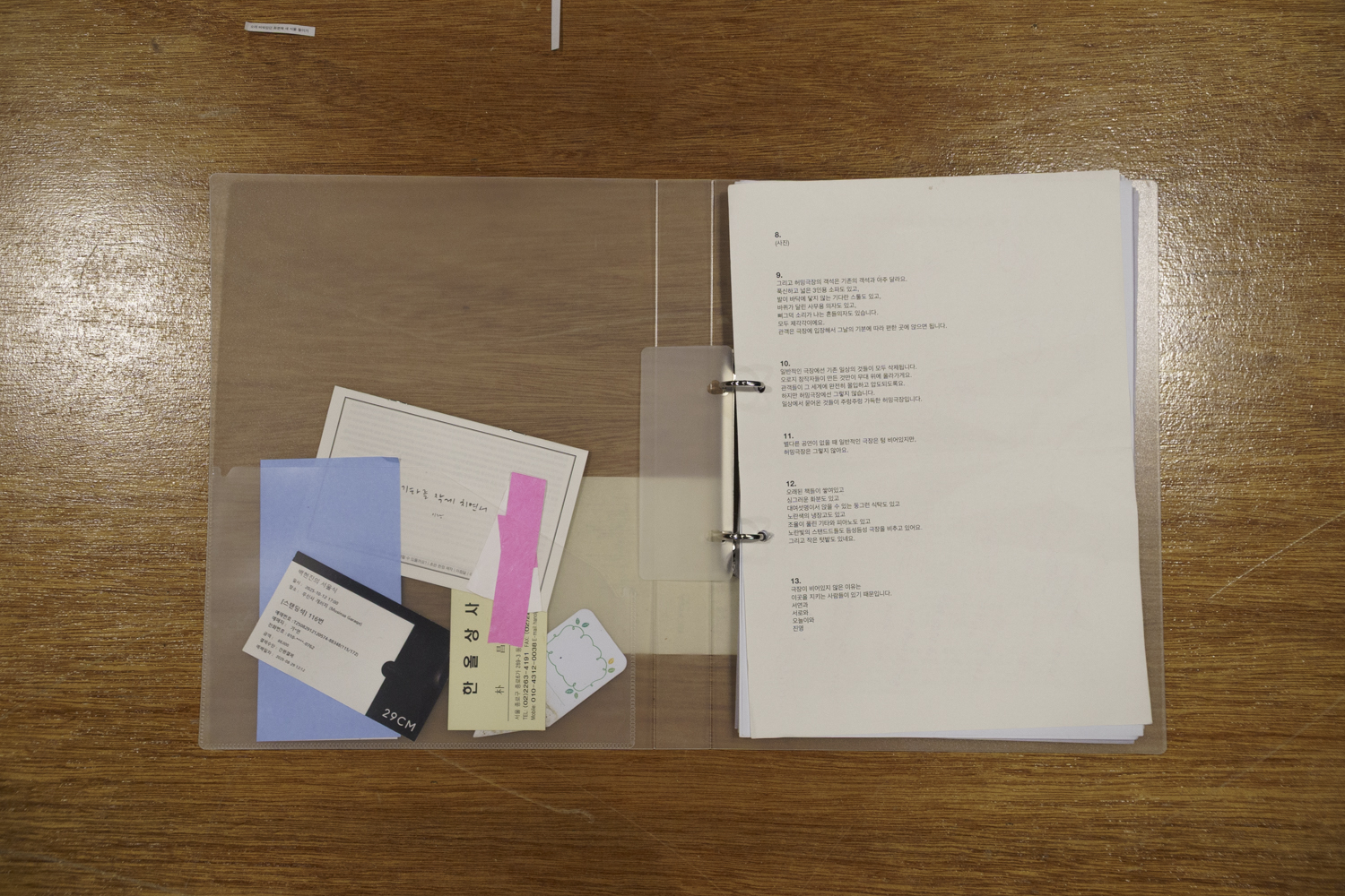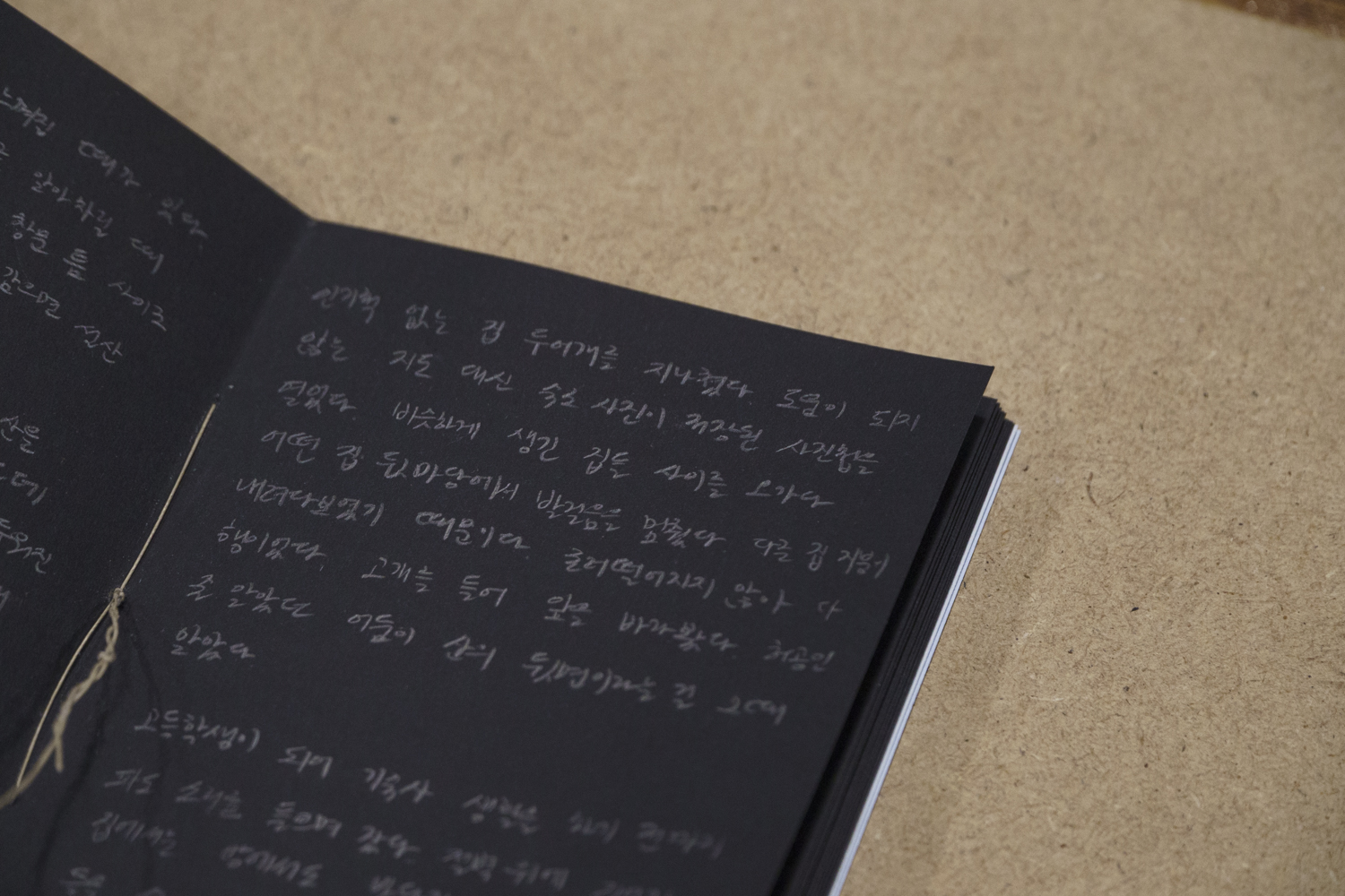 ‘나의 극장을 갖고 싶다’라는 막연한 꿈은 현실적인 문제 앞에서 ‘귀한 장면들을 쌓다 보면 우주 저기 어딘가에서 나의 극장을 지어지고 있을 것’이라는 믿음으로 전환한다. 어쩌면 극장은 물리적인 건축물로써 건재하는 것이 아닌 ‘같은 장면에 놓인 우리가 주고받은 공기 입자의 모임’이라고 다시 한번 믿어보면서. 겨울방학 동안 그 귀한 것들이 무엇인지 커다란 종이 위에 투박하고 거칠게 적어보았다.