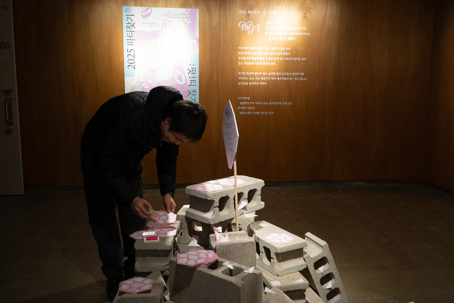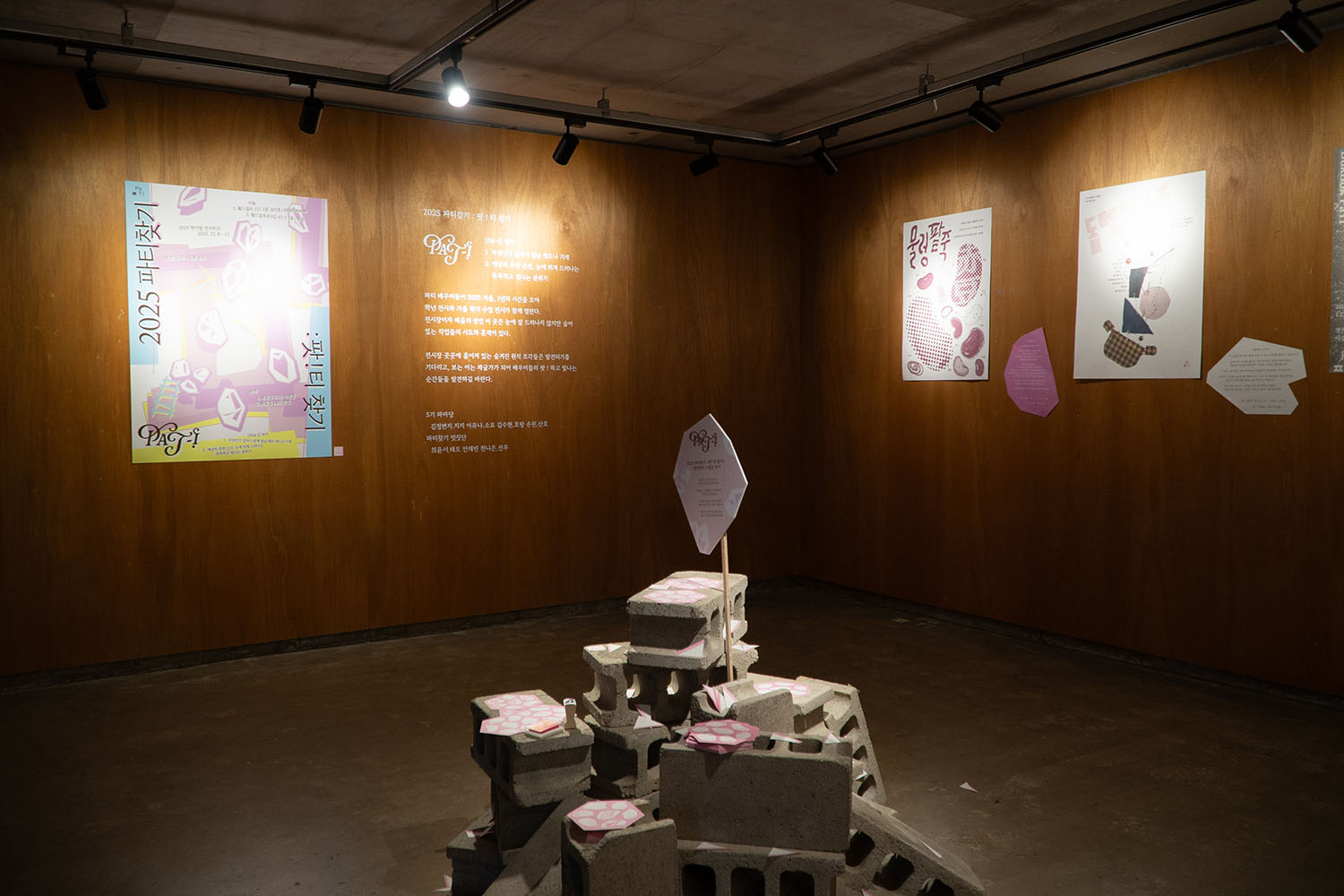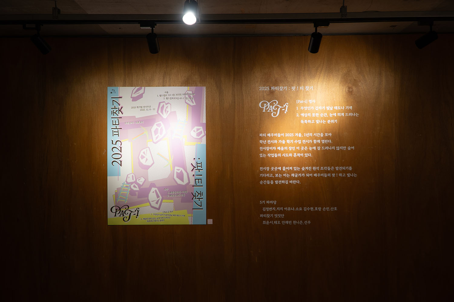 «파티찾기: 팟 ! 티 찾기»에서는 파티 배우미들이 2025 겨울, 1년의 시간을 모아 학년 전시와 가을 학기 수업 전시가 함께 열린다. 전시장이자 배움의 장인 이곳은 눈에 잘 드러나지 않지만 숨어 있는 작업들의 시도와 흔적이 있다.