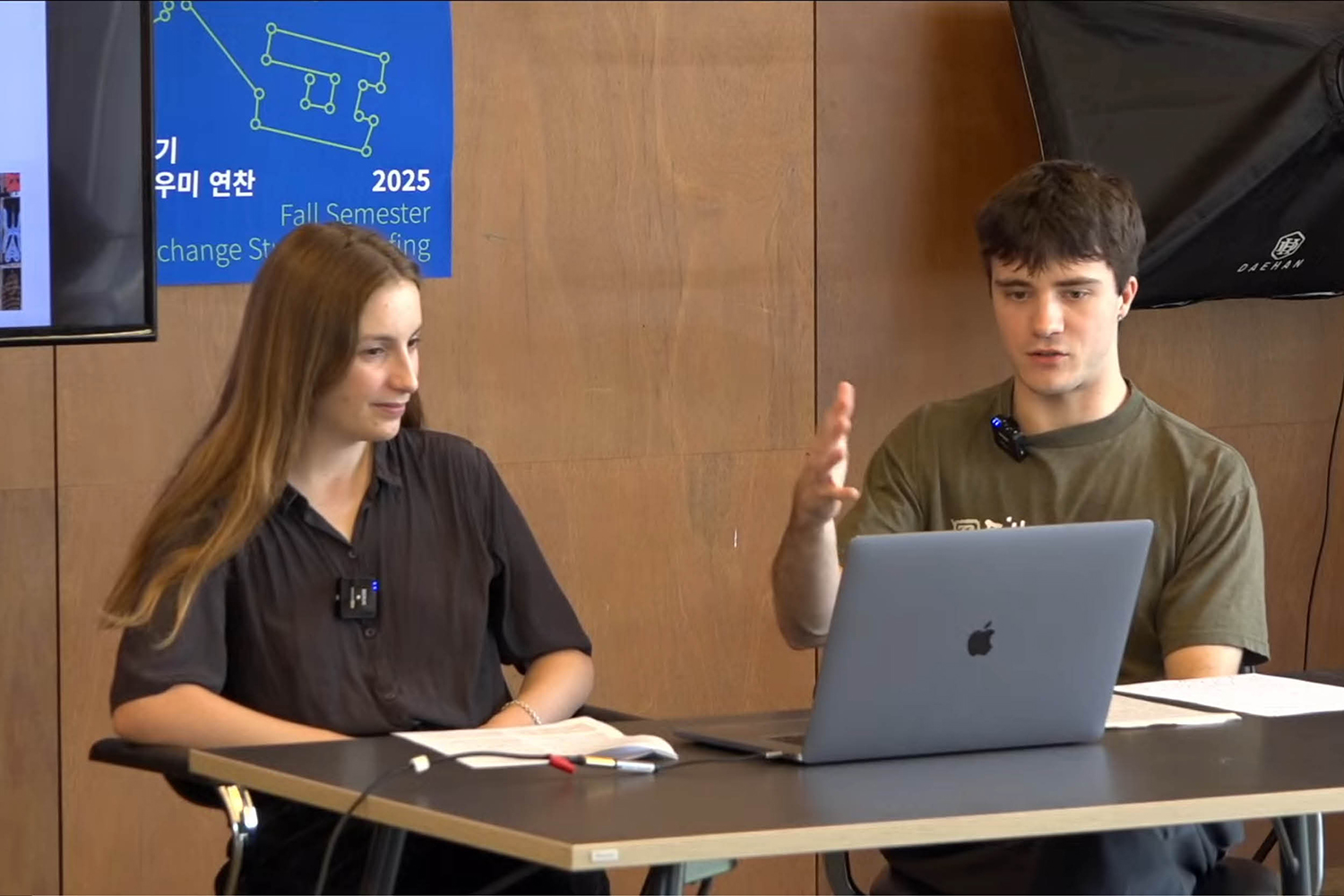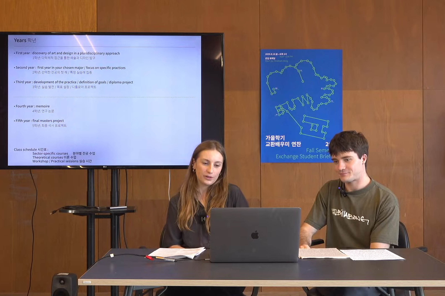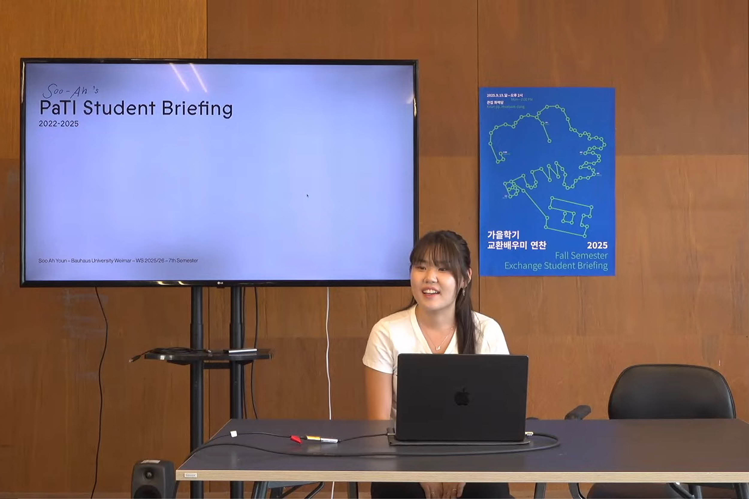 이번 가을학기에 PaTI로 교환배움을 온 5명의 교환배우미의 연찬이 열렸습니다. 프랑스 국립장식미술학교에서 온 Camille과 Leo를 시작으로, 독일 바이마르 바우하우스대학의 SooAh, 그리고 벨기에 라캉브르 국립시각예술학교의 Josephine과 Shani가 이야기를 나누어주었습니다. 각자 학교에서의 배움 과정과 경험 그리고 작업을 소개하며 파티 배우미들과 교류하는 시간을 보냈습니다.